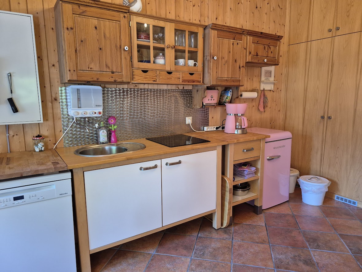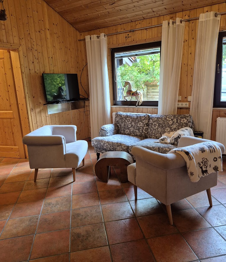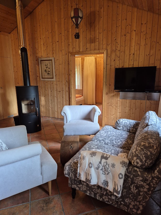 Für passionierte Naturfreunde, zum Relaxen nach einer langen Wanderung. Unser kleines, gemütliches Holzhaus von 45 qm erwartet Euch mit Kaminofen und eigenem, eingezäunten Garten. Die Ausstattung umfasst eine Wohnküche, ein Schlafzimmer mit Doppelbett (2x2m) und ein kleines Badezimmer. Im Sommer ist es im Haus wunderbar kühl, im Winter sorgt eine Gasheizung für Wärme. Wer es besonders gemütlich mag, kann sich den Kaminofen anzünden – Brennholz ist inklusive. Die einfache Küchenzeile ist ausgestattet mit Spülmaschine, Ceranfeld, Kühlschrank, Kaffeemaschine, Senseo Maschine, Teekanne und Toaster.